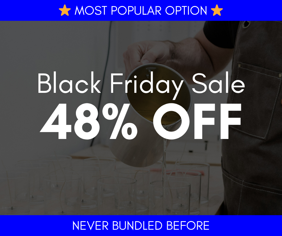 - Save the most money while getting a full education that covers everything from wick testing and pouring methods to branding, marketing, sales channels, and wholesale outreach.